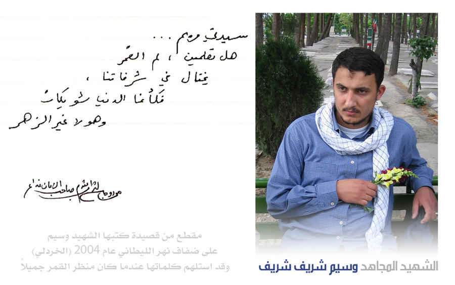 للسيّد حسن نصر الله أقول: الحمد لله الذي خلقني في زمان أنت فيه، وأسأل الله بدماء الشّهداء أن يُطيل عمرك في خدمة المُستضعفين وإعلاء كلمة الحقّ وأن يختم لك بالسّعادة والشّهادة بين يدَي وليّ أرواحنا لتراب مقدمه الفداء.